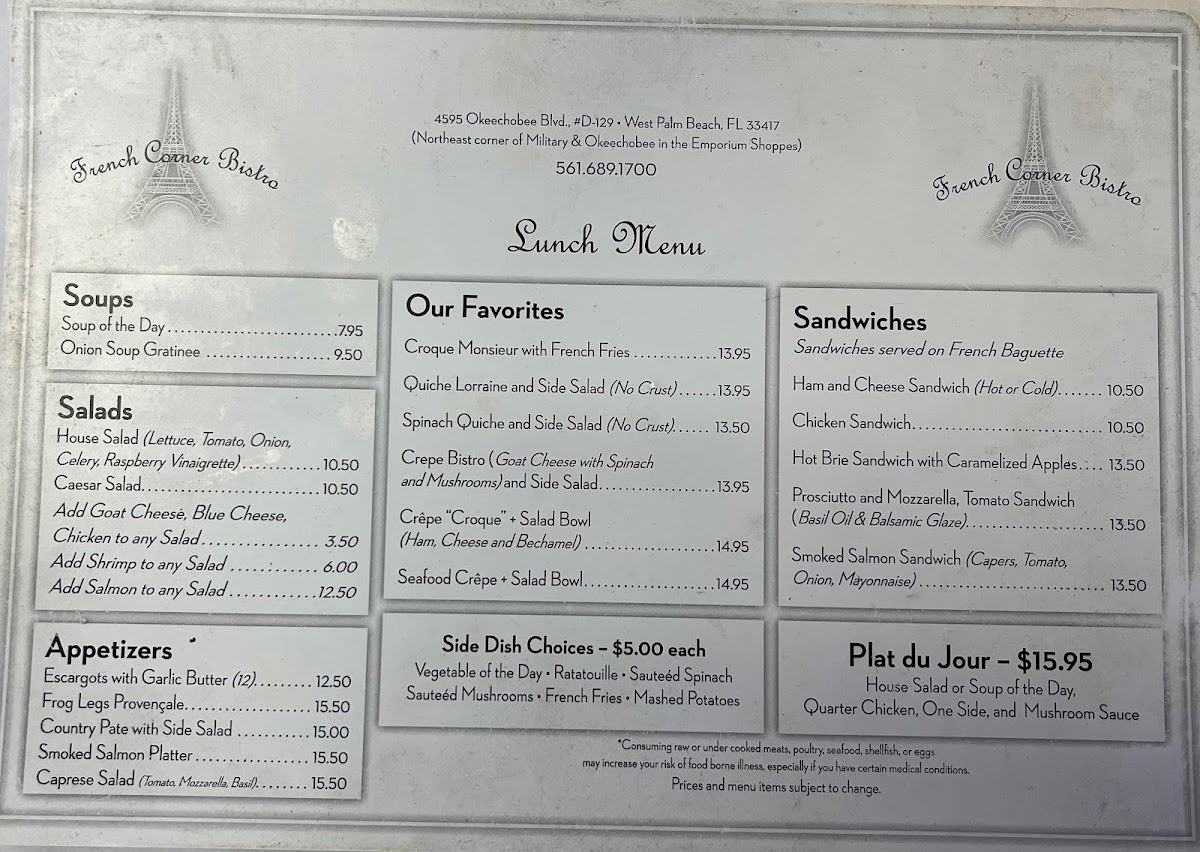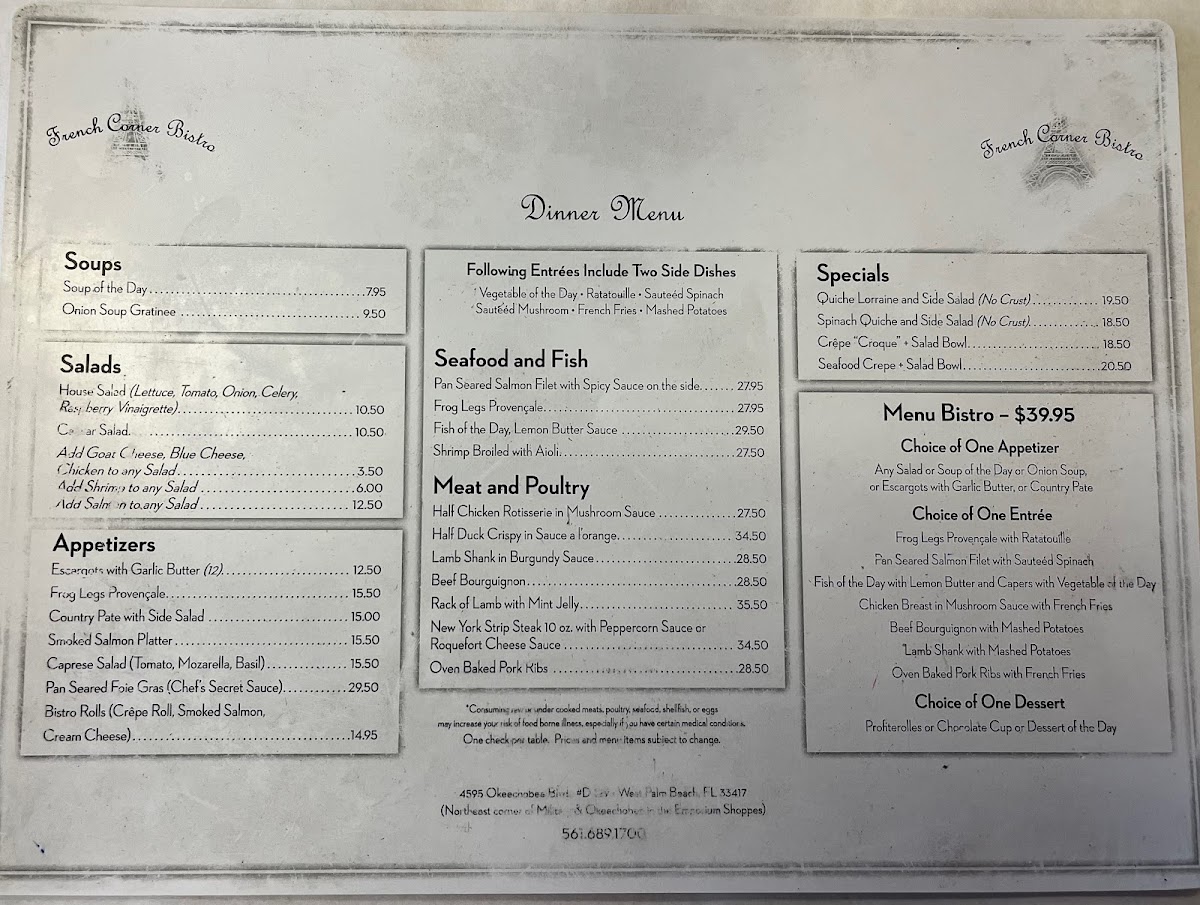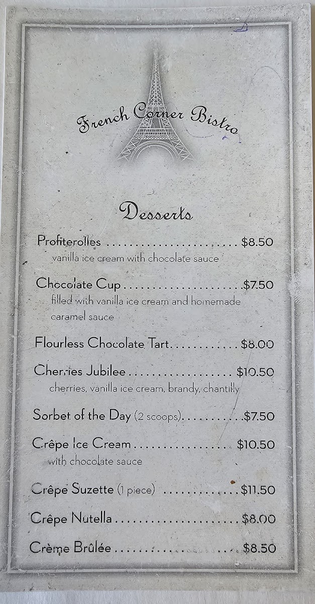 French Corner Bistro Menu